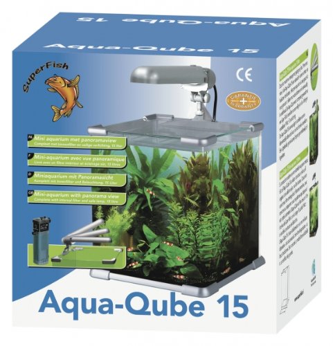 SF Aqua-Qube 15 GrisMini-aquarium avec vue panoramique, livré avec un filtre intérieur et éclairage, 15 L. Sa conception moderne en verre bombé (vue panoramique) fait de l'Aqua-Qube 15 un décor dans toute pièce qu'il s'agisse d'une salle de séjour ou d'un bureau. L'aquarium ouvert peut être aménagé de différentes manières, avec crevettes ou uniquement avec des plantes aquatiques et il est simple à entretenir. L'Aqua-Qube est livré avec un filtre intérieur de SuperFish et un éclairage PL sûr de 9 Watt orientable dans toute directions. L'Aqua-Qube 15 s'installe facilement et est une meilleure alternative, plus soucieuse du bien être des poissons, au bocal traditionnel. Sont compris un mode d'emploi détaillé et un certificat de garantie. Contenance 15LDimension hors éclairage : 25x25x25 cm Grâce au verre bombé (vue panoramique) de conception moderne, l’Aqua-Qube constitue un véritable bijou dans chaque espace, du salon au bureau. L’aquarium ouvert permet un aménagement multiple, comprenant des poissons rouges, des queues de voile, des petits poissons tropicaux ou des plantes aquatiques uniquement. Très facile d’entretien, l’Aqua-Qube est complet avec filtre interne SuperFish et éclairage PL sécurisé et réglable dans tous les sens. Disponible en 3 dimensions.